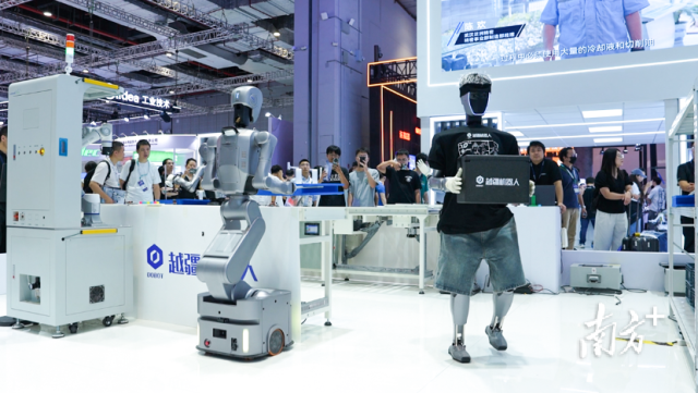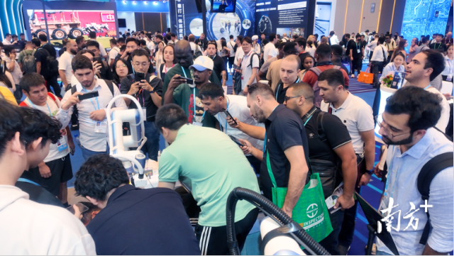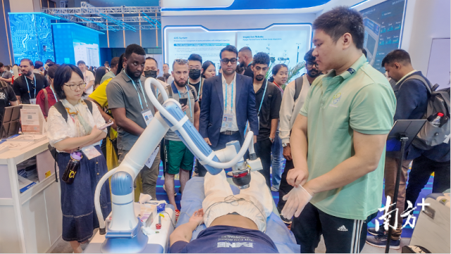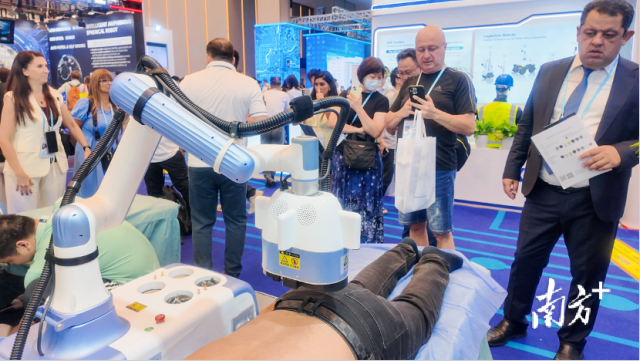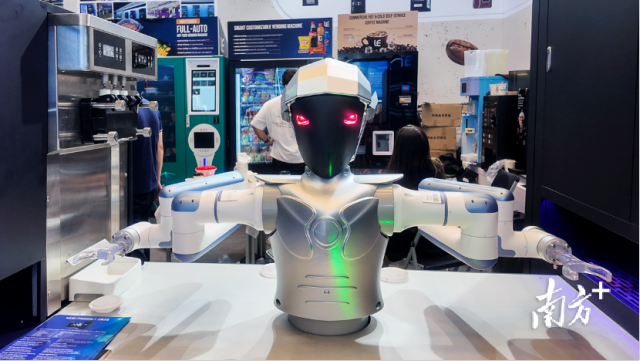 在越疆科技的展台前,能自主学习进化的机器人“理疗师”、全自动制作咖啡的机器人“咖啡师”以及可以精准复现专家手法的机器人“艾灸师”同台竞技,成为场馆内的焦点之一。